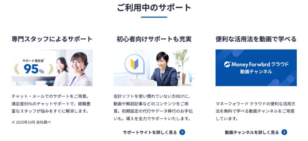 • スタートアップガイド: ログイン後「サポート」→「使い方ガイド」で、初期設定・仕訳入力の動画・手順書が無料閲覧可能。