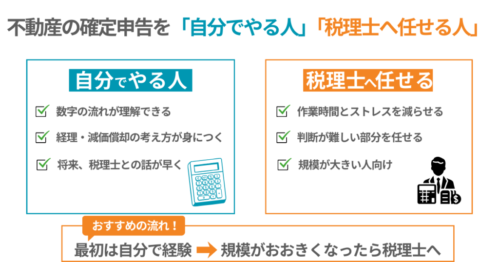 1. 不動産の確定申告を「自分でやる人」と「税理士へ任せる人」
