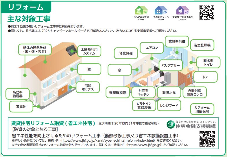 2026年の目玉補助金が「みらいエコ住宅2026事業(リフォーム版)」ばい。国土交通省・経済産業省・環境省の3省が連携した「住宅省エネ2026キャンペーン」の柱の一つたい。