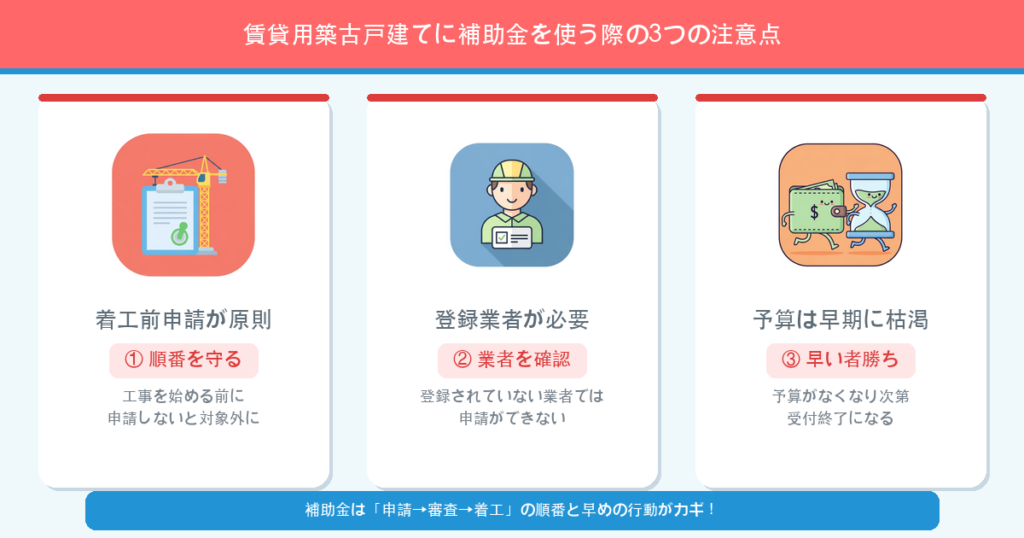 賃貸用築古戸建てに補助金を使う際の3つの注意点