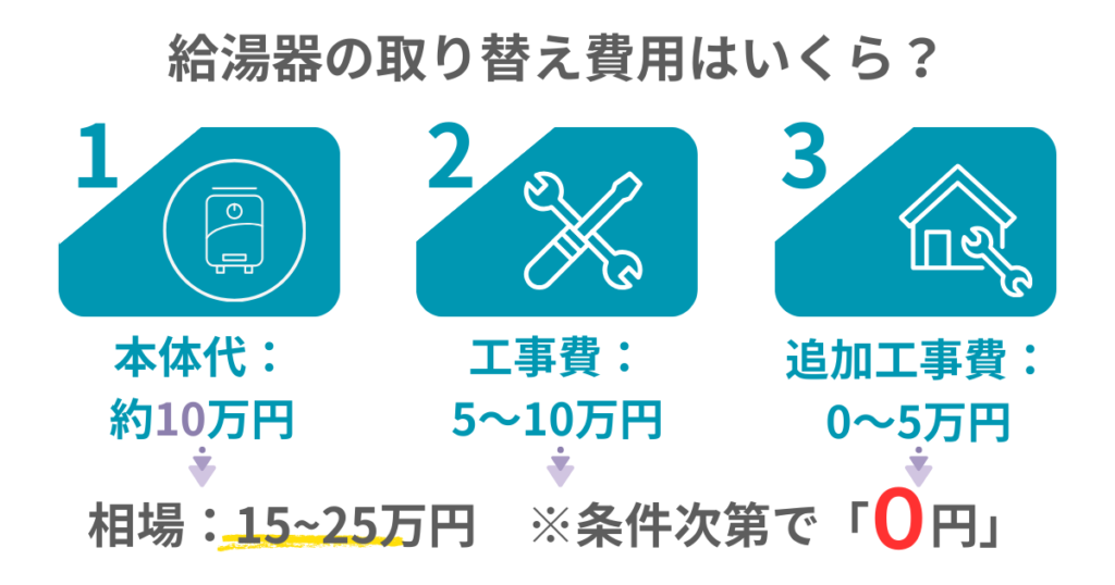 給湯器の取り替え費用は、主に以下の3つで構成されています。