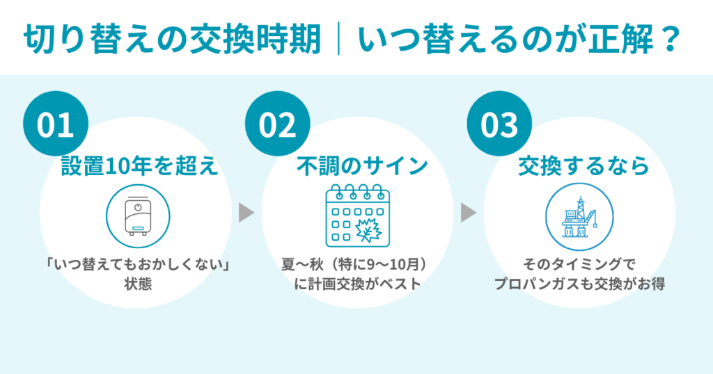 • 不調のサインが出始めたら、冬を待たず「夏〜秋(特に9〜10月)」に計画交換がベスト。