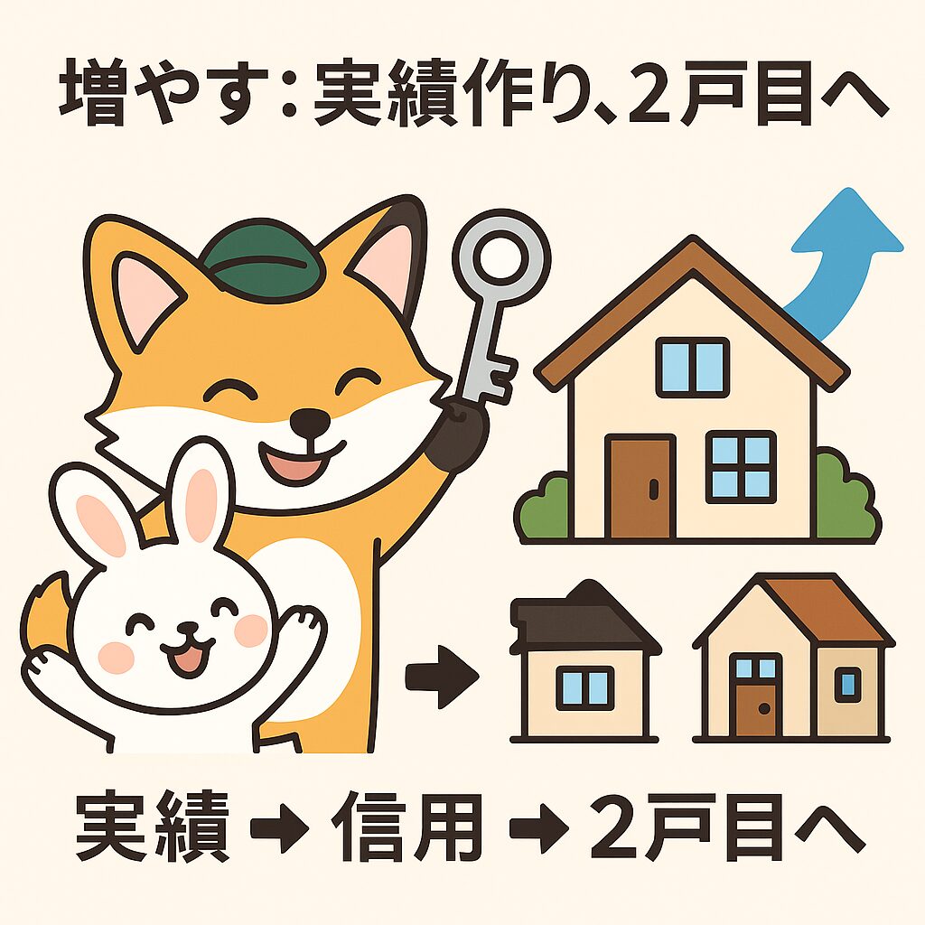 物件を運用し始めたら、次は「増やす」ステップばい。家賃収入を上手に管理して、次の物件購入を考えたり、税金や節税対策をしっかり学んだりして、収益をさらに伸ばしていこう!